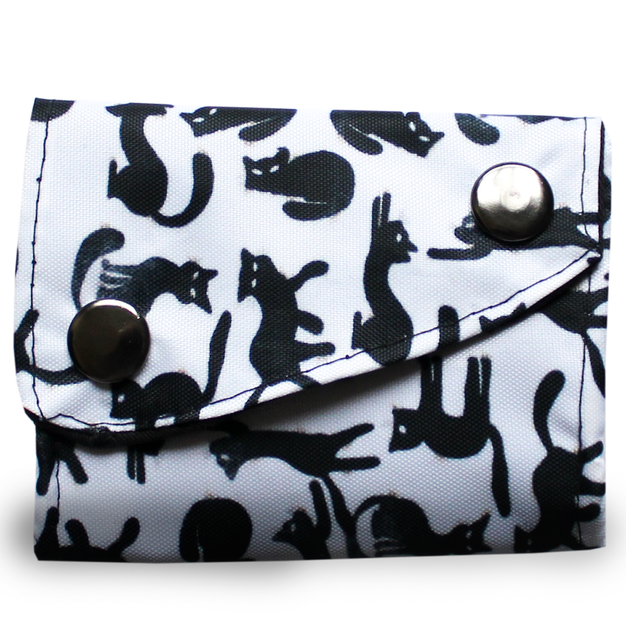 Billetera de gatitos hecha de tela estampada en su exterior y gabardina para su interior. realizada completamente a mano, cuenta con 03 compartimentos internos, para tarjetas, monedas y billetes.