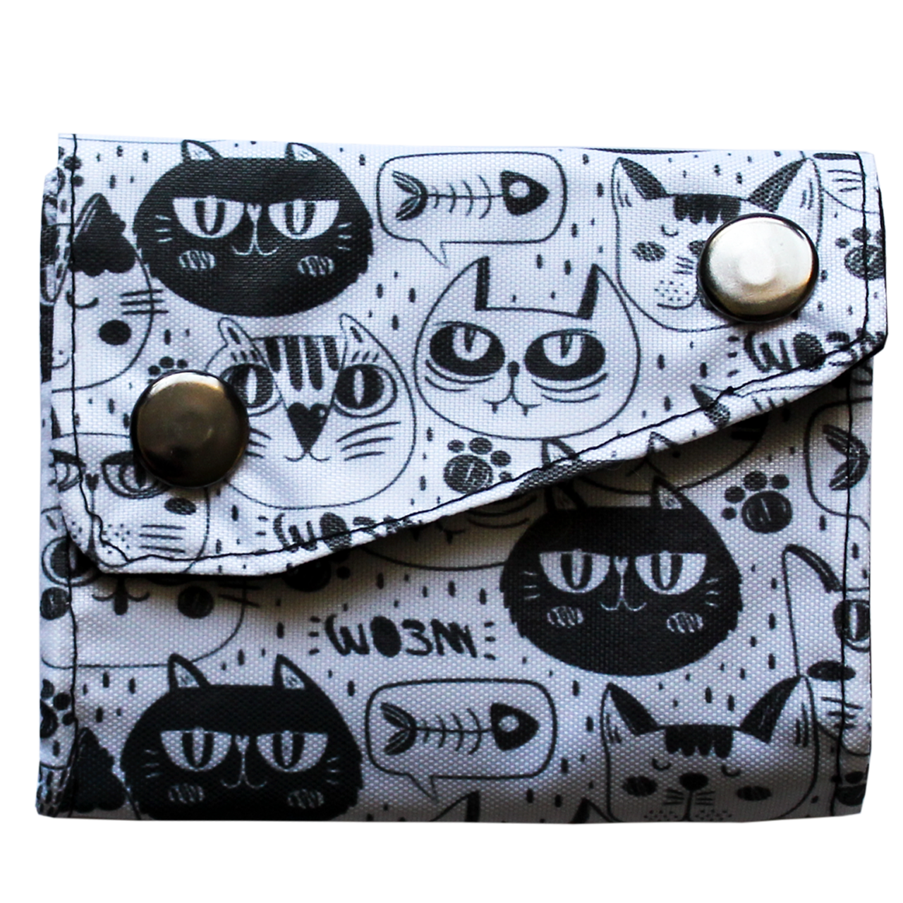 Billetera de gatitos hecha de tela estampada en su exterior y gabardina para su interior. realizada completamente a mano, cuenta con 03 compartimentos internos, para tarjetas, monedas y billetes.