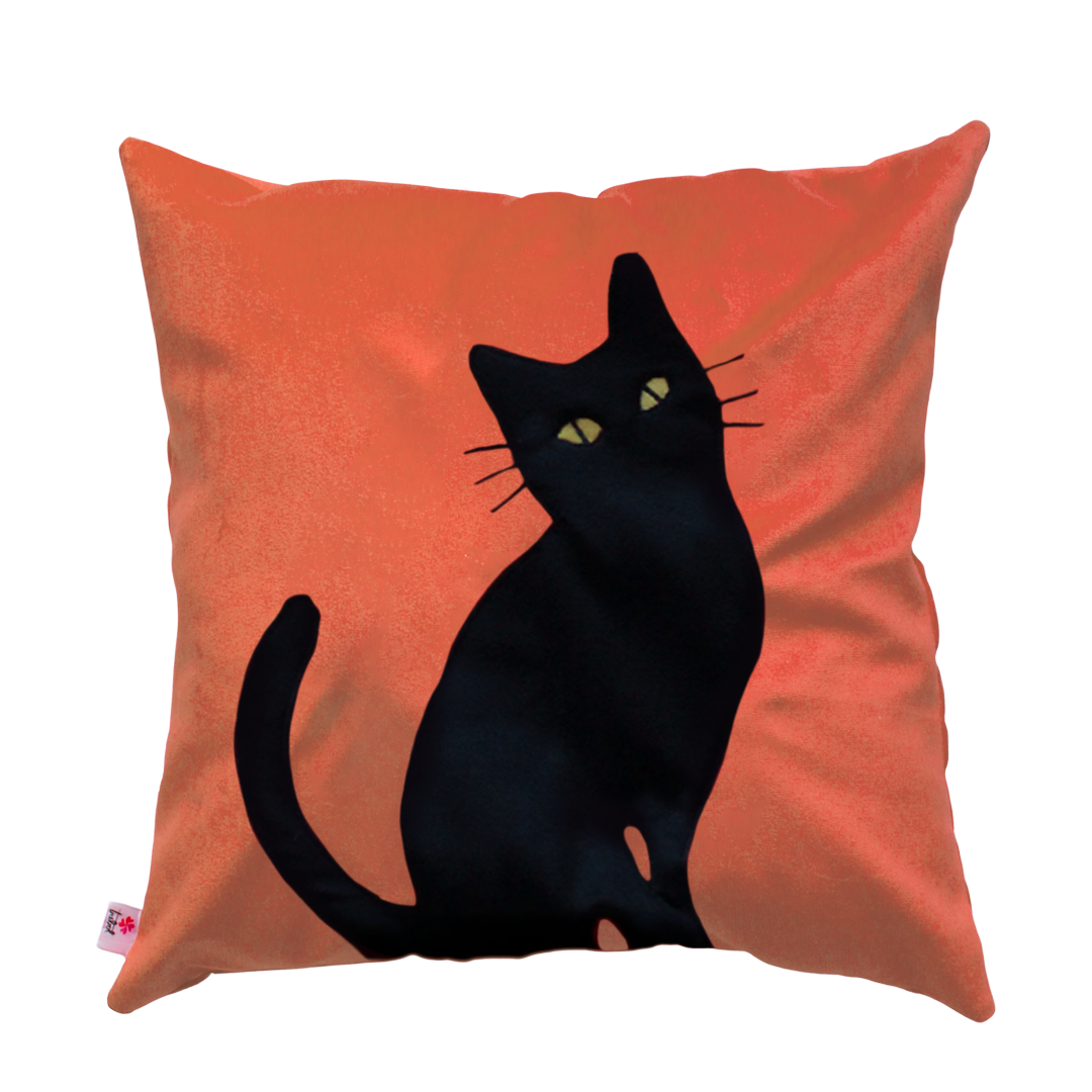 cojín de gatito hecho a mano de tela felpa. El gatito va bordado sobre la tela. Cuenta con cierre solapado para retirar relleno y lavado de funda.Incluye relleno con su respectivo forro.Dimensiones aproximadas: alto 40cm, ancho 40cm aproximadamente.