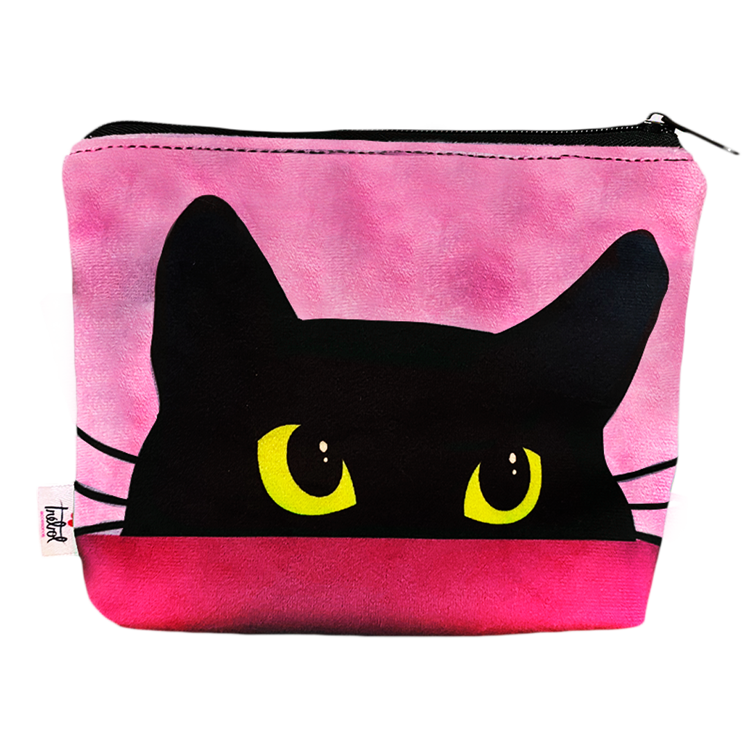 Estuche cosmetiquero de gatito hecho con tela felpa. Realizado a mano, cuenta con 1 compartimento y forro para proteger tus cosas.Dimensiones aproximadas: alto 14cm, ancho 19 cm, fondo 4cm.Liviano, resistente, funcional y práctico.