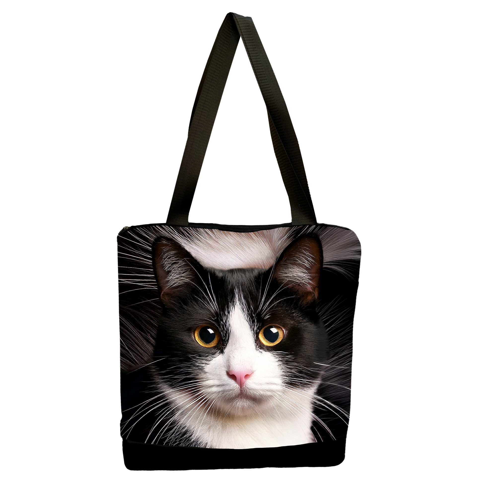 - Hermoso bolso estampado con imagen de gatito en primer plano. por su reverso también tiene aplicado el diseño del pelaje del gatito para hacerlo único y maravilloso.