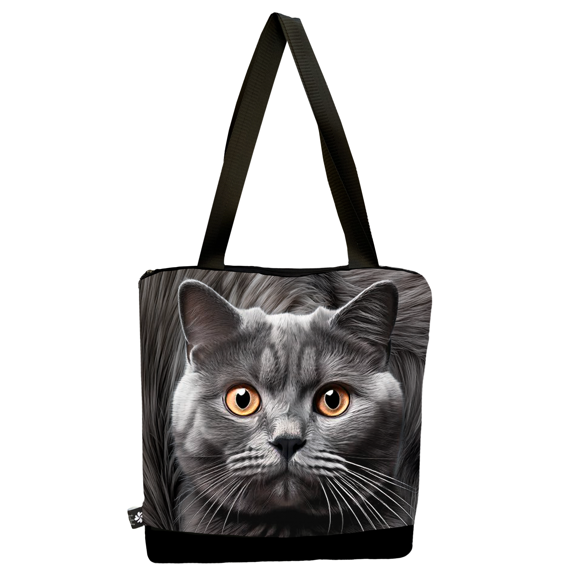 - Hermoso bolso estampado con imagen de gatito en primer plano. por su reverso tambien tiene aplicado el diseño del pelaje del gatito para hacerlo único y maravilloso.